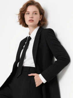 Women's Wool Blend Pinstripe Suit - Tailored Fit for Office Wear